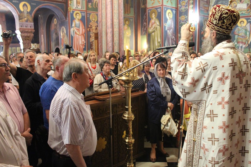 Након Свете литургије обављен је славски обред и литија око храма, а потом је у парохијском дому, за око четири стотине присутних, уприличена славска трпеза љубави.