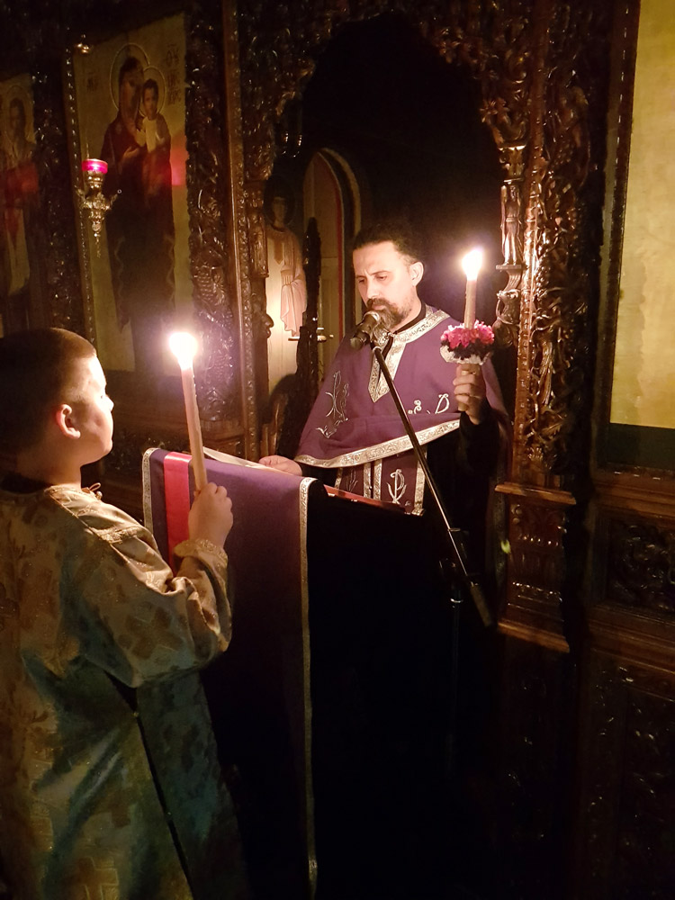 У предвечерје Великог петка, 5. априла, у храму Светих Кирила и Методија у Љубљани, служено је Велико бденије на коме је читано дванаест јеванђелских одломака о страдањима Господа Исуса Христа.