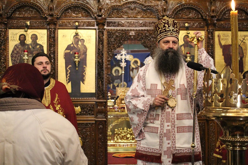 После прочитаног јеванђељског зачала, Митрополит Порфирије се обратио сабраном верном народу пригодном беседом тумачећи прочитану јеванђељску причу и говорећи о Недељи Православља. Митрополит је нагласио да у ову недељу наша Света Црква слави победу Православља над иконоборством и иконоборцима за очување светих икона у Цркви. Празник је установљен 843. године, за време Патријарха Светог Методија Исповедника и побожне царице Теодоре, када је Православље доживело коначни тријумф над иконоборством.