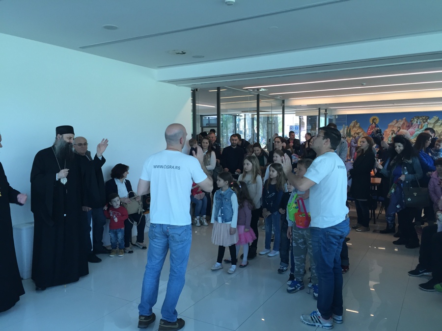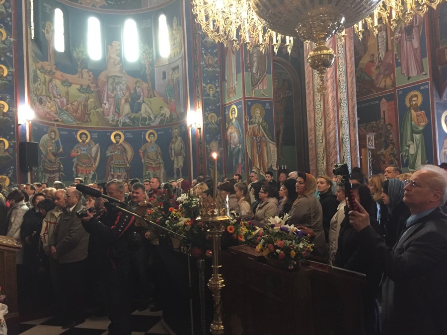 У току свете литургије готово сви присутни верници приступили су светој тајни причешћа. У својој беседи Митрополит Порфирије је говорио о страдању и васкрсењу Господа Исуса Христа. По завршетку литургије за децу је приређено угодно васкршње дружење у парохијском дому. Поред играонице деца су исто тако украшавала васкршња јаја.